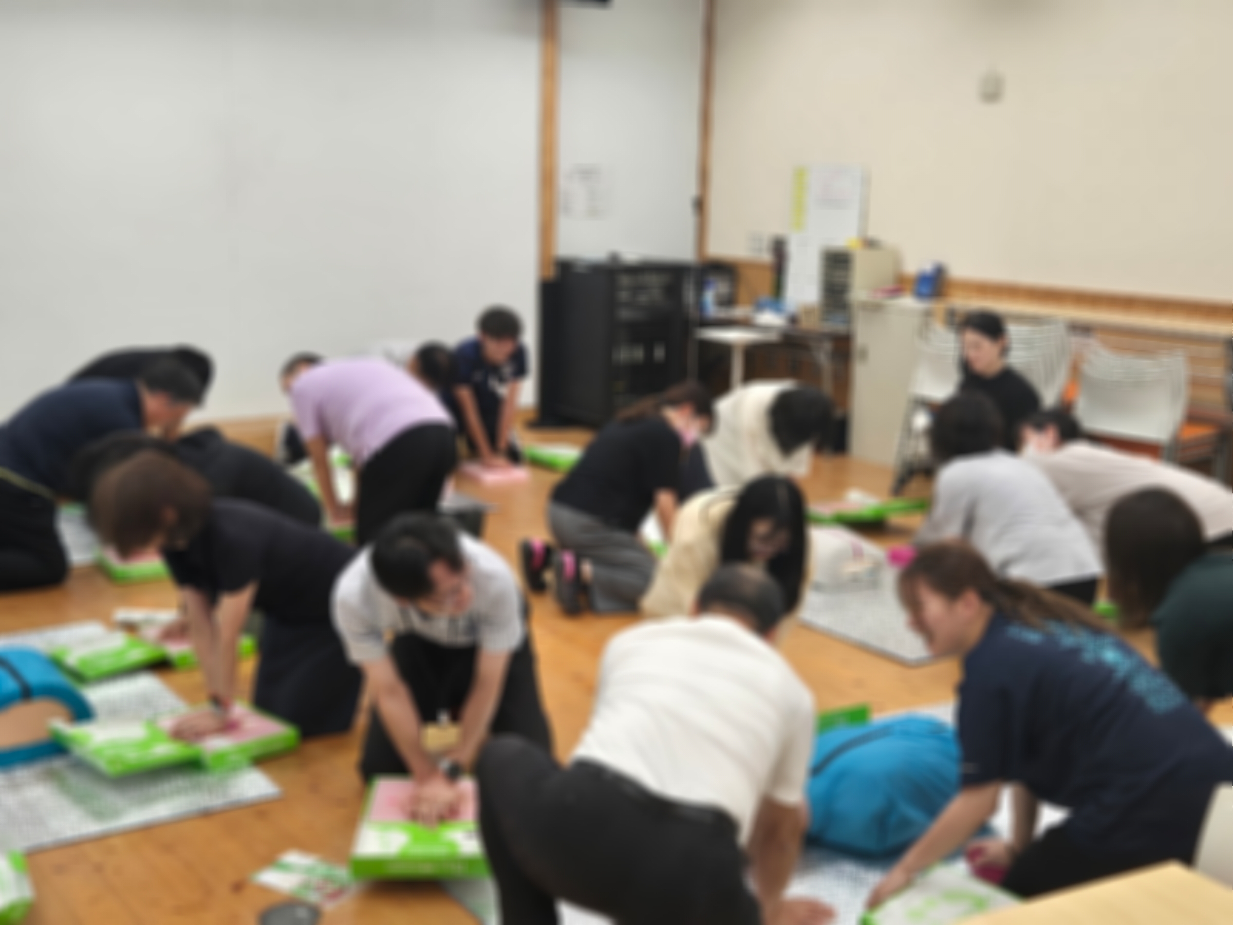 保健体育の授業でもやりますが、いざというときに備えてやってみたいという生徒さんは健康教育室へ来てください!