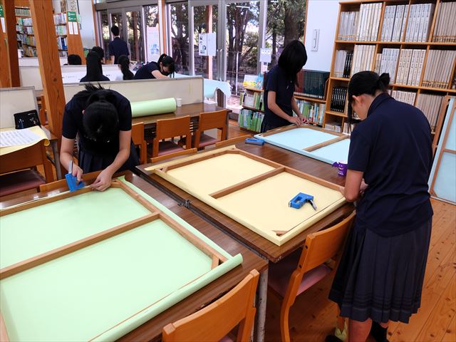 今年のテーマは「私を変えた本」。図書委員が心を込めて、人生をガラリと変えた本を1枚のパネルにギュッと詰め込んで紹介しました。特に、その本がどれほどのインパクトを与えてくれたかをアピールしようと頑張りました! また、パネル作りでは、2年生が去年の経験を活かして1年生にコツを伝授するなどして、みんなで助け合って、見事に完成させました。