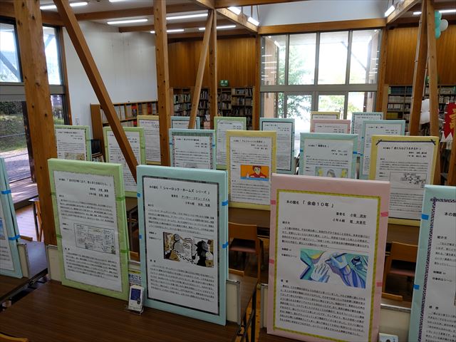 生徒や他校生、先生方、そして一般の方々が多数来館してくださいました。「紹介された本は未読のものばかりで、これからぜひ読んでみたいです」「自分を変える一冊に出会えるって素敵!」「どれも工夫満載で、読んでみたくなりました」「初めて知る本も多く、興味深かったです。絵も素晴らしい!」などと、アンケートに嬉しい感想をいただきました。