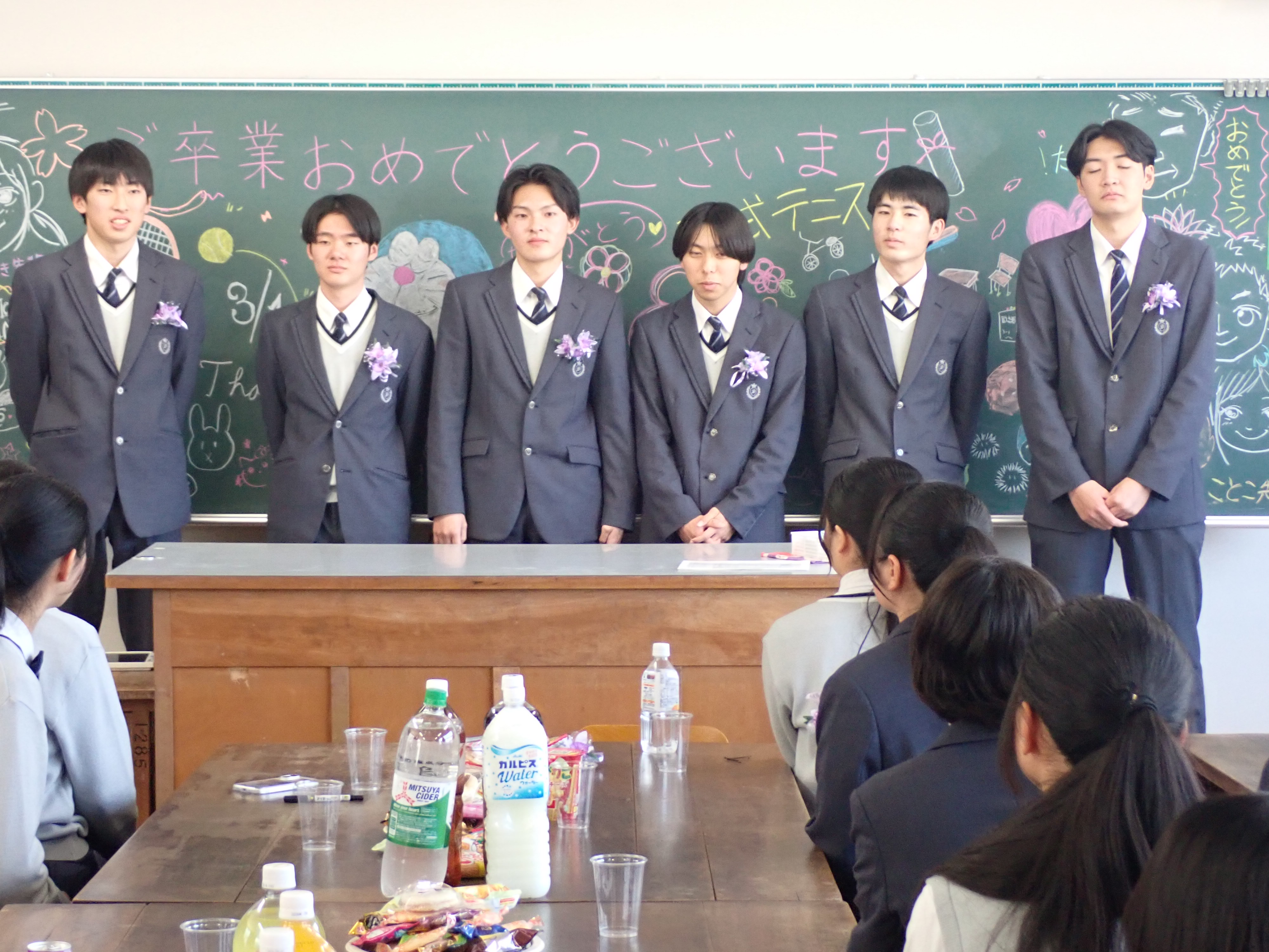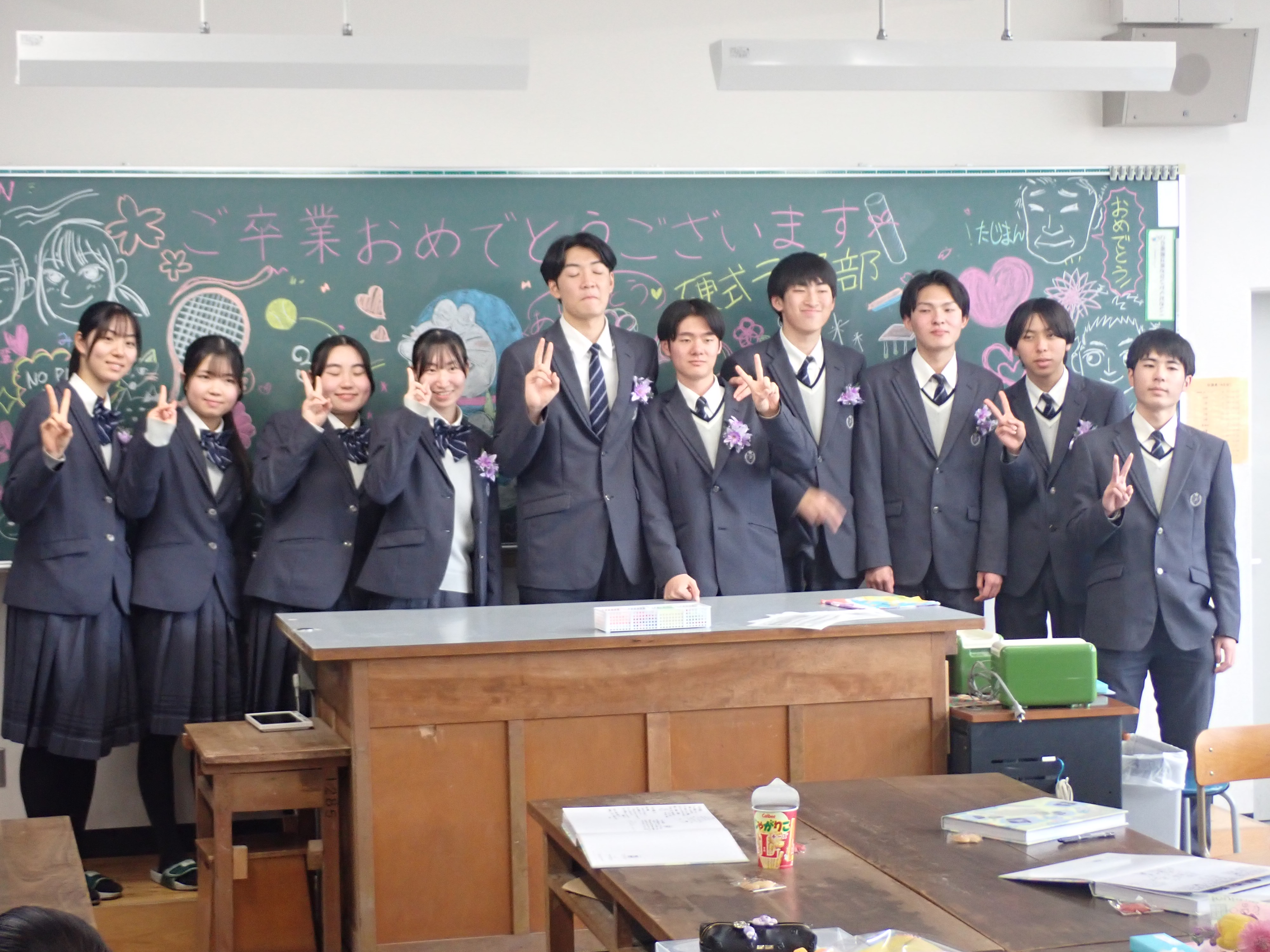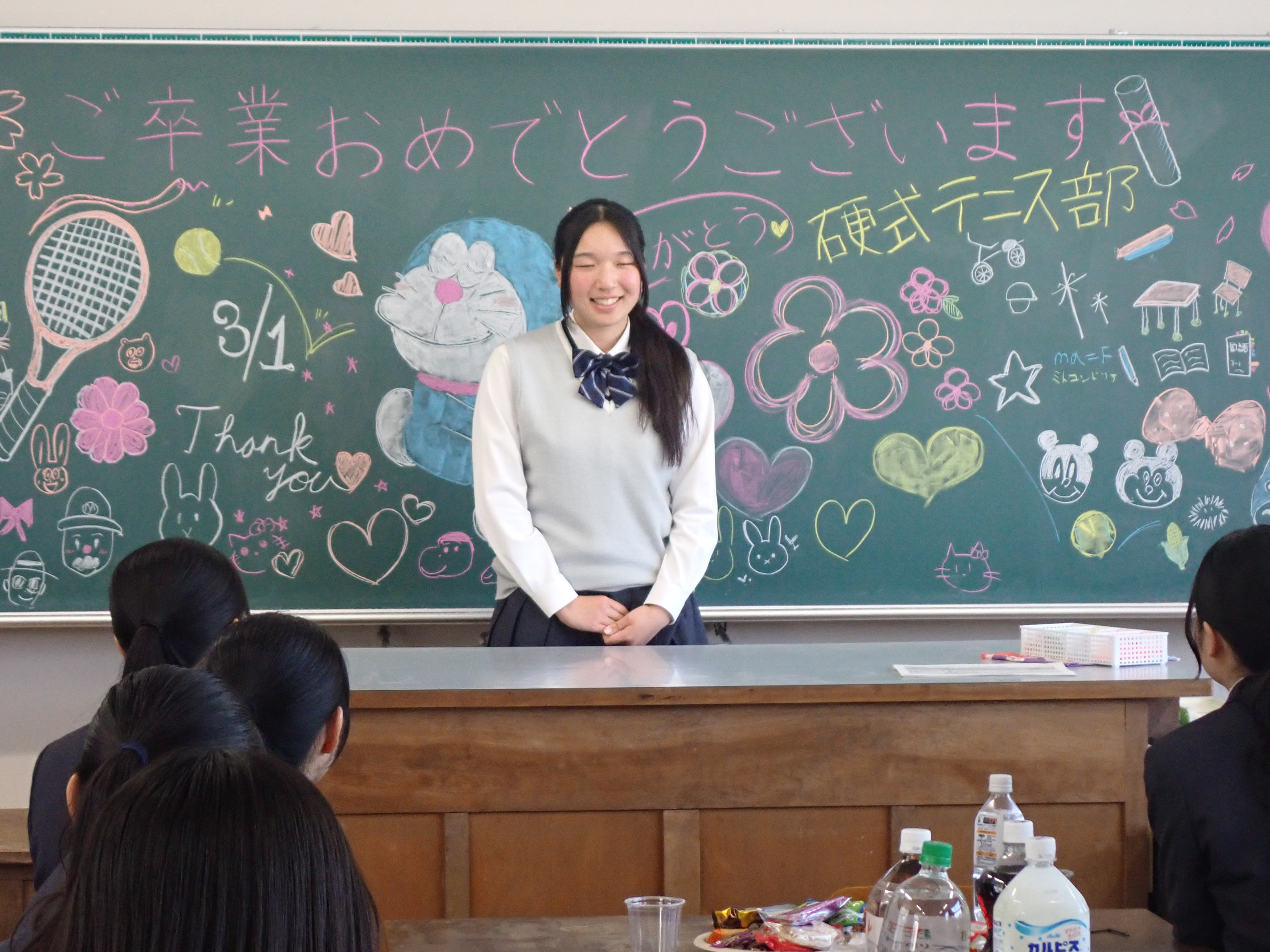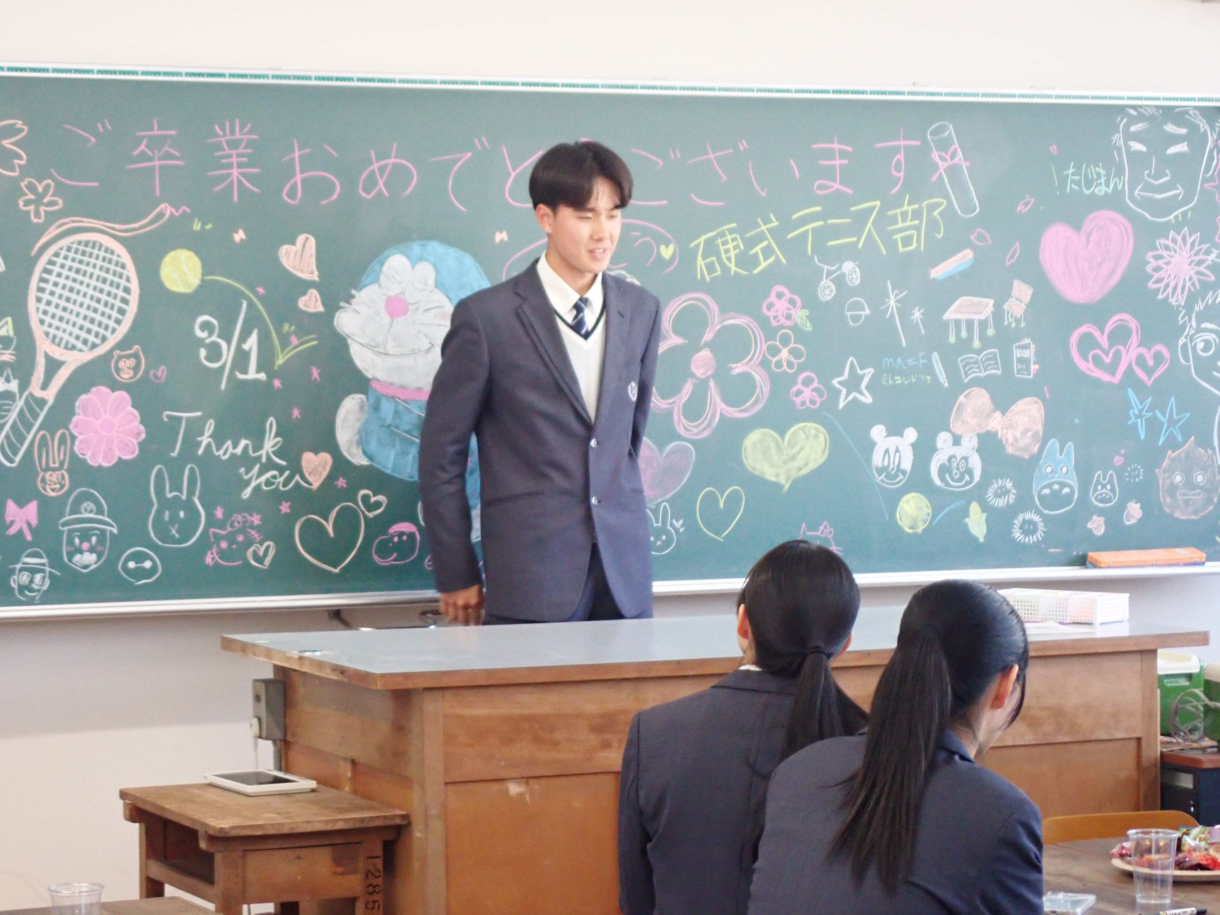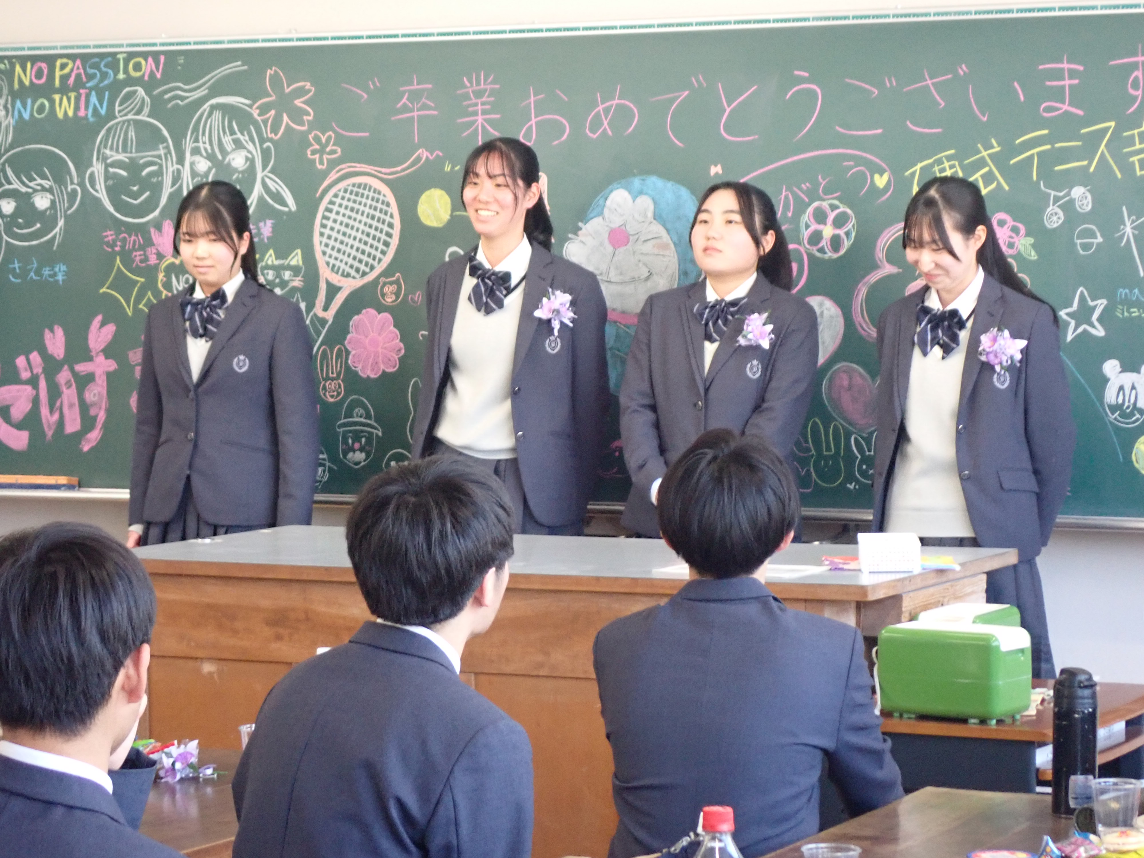 3月1日、第62回の卒業式が行われました。受験に追われていた卒業生が、高校生活の思い出に浸る一瞬です。午前中の卒業式の後、午後からテニス部の卒部式を行い、10人の先輩方を第二高校から送り出しました。