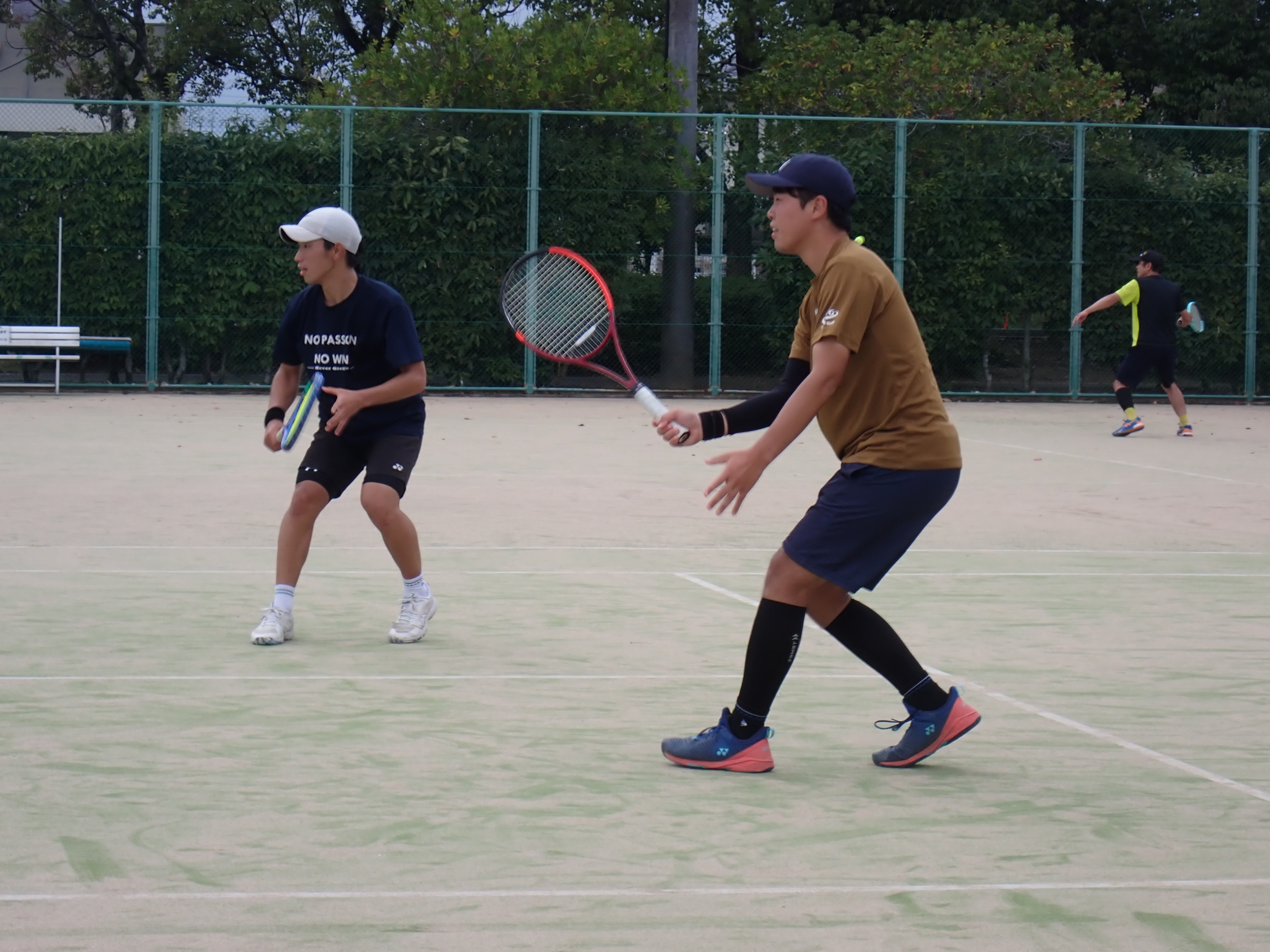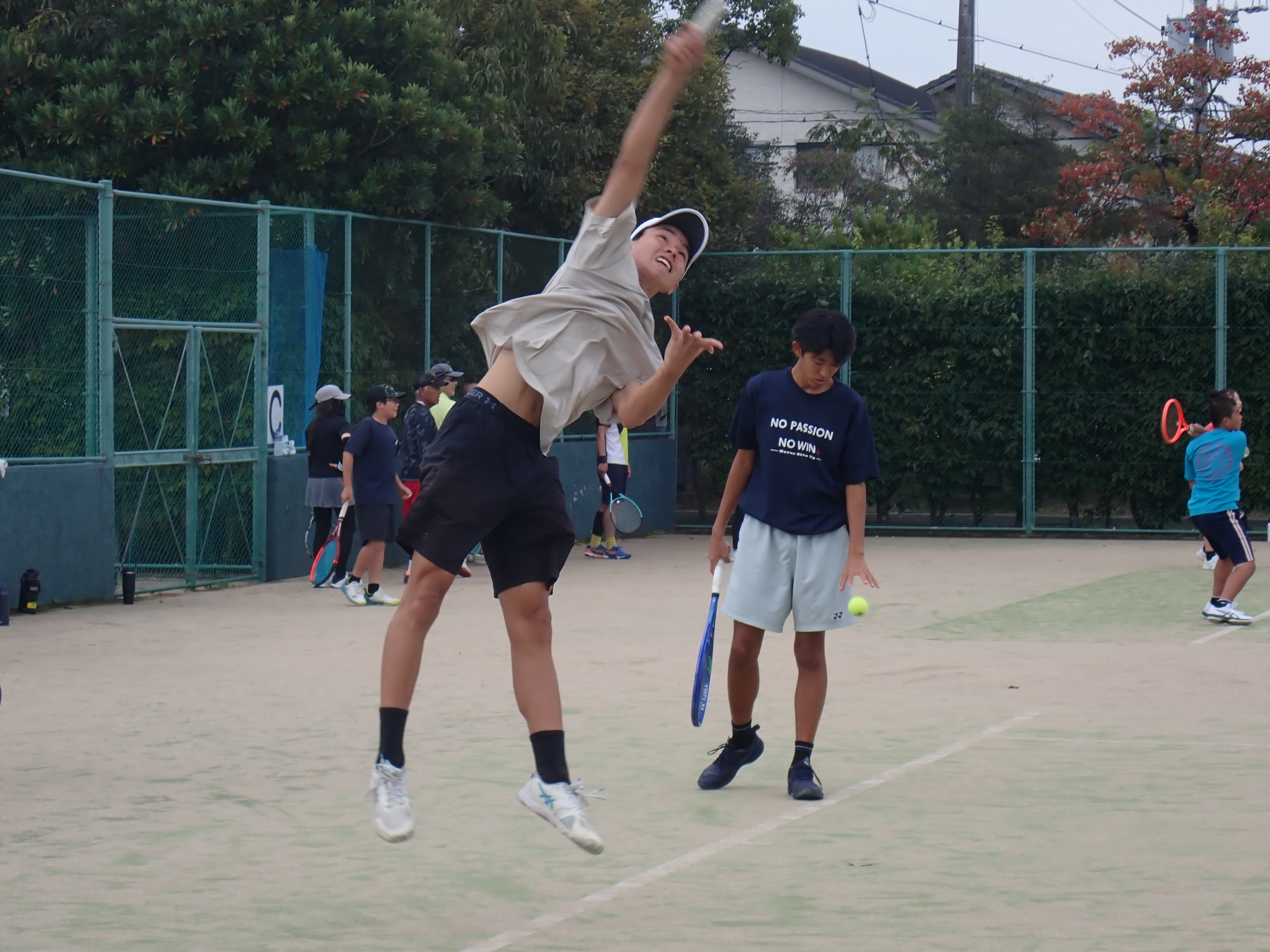 在学中は2年連続でインターハイに出場した先輩のプレーは、無駄な力も入っておらず、ストローク・ボレー・サーブどれをとってもミスが少ないものでした。見習いたいと思います。