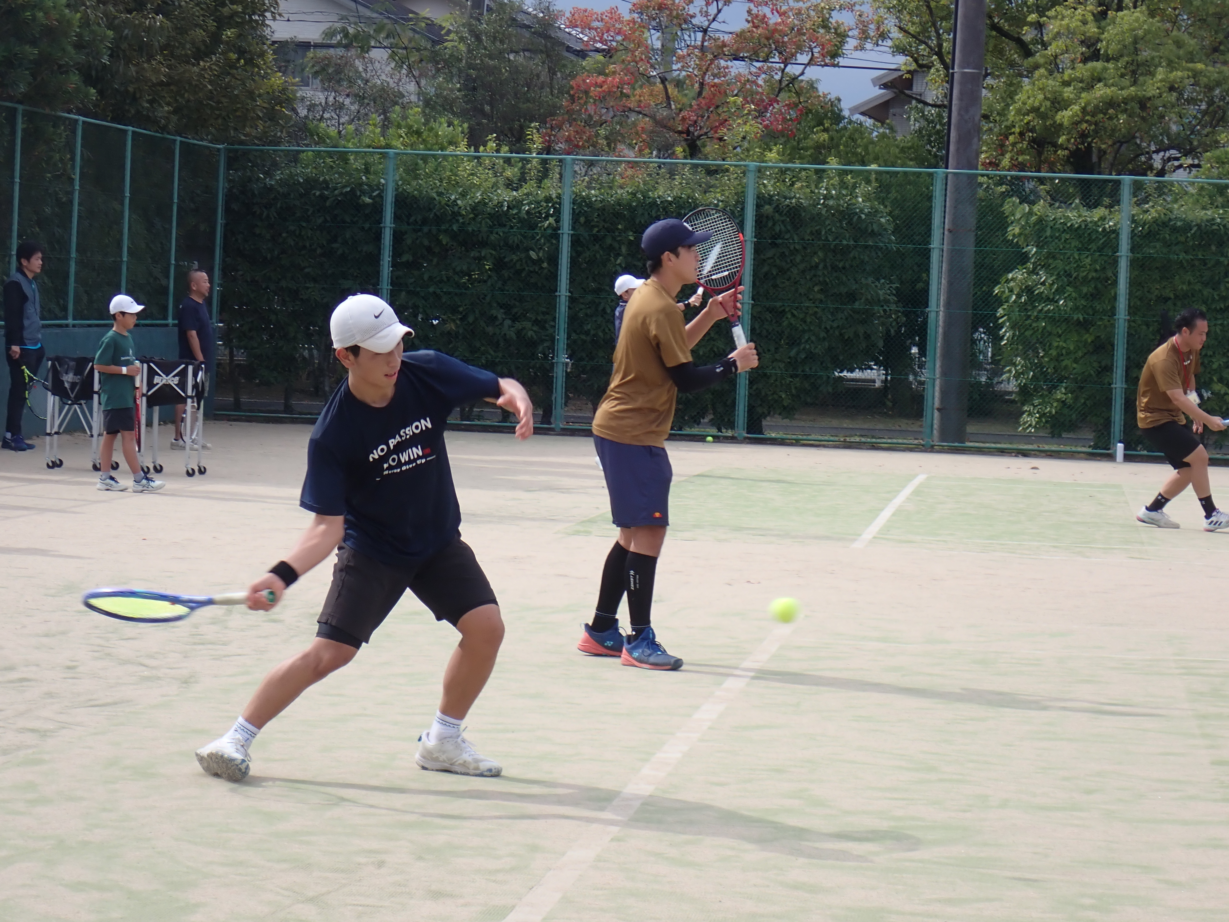 11月2日は熊本市テニス協会主催のテニス教室に、全国選抜高校テニスの九州大会に出場するメンバーが参加しました。指導していただいた熊本銀行テニス部の方の計らいで、一般参加者とは別メニューの基本練習に取り組みました。この日は九州選抜2週間前ということもあり、体に負荷を与える練習に取り組み、練習の間の長距離走や単純な基本練習の繰り返し、ミスができない精神的なプレッシャーの中での練習など、普段の練習とは違った緊張感のある内容を消化しました。熊本銀行テニス部には本校テニス部のOBも所属されており、午後からは胸を貸していただき細かい指導をいただきました。秋らしい過ごしやすい天気に恵まれ、終日テニスにのめり込んだ一日でした。