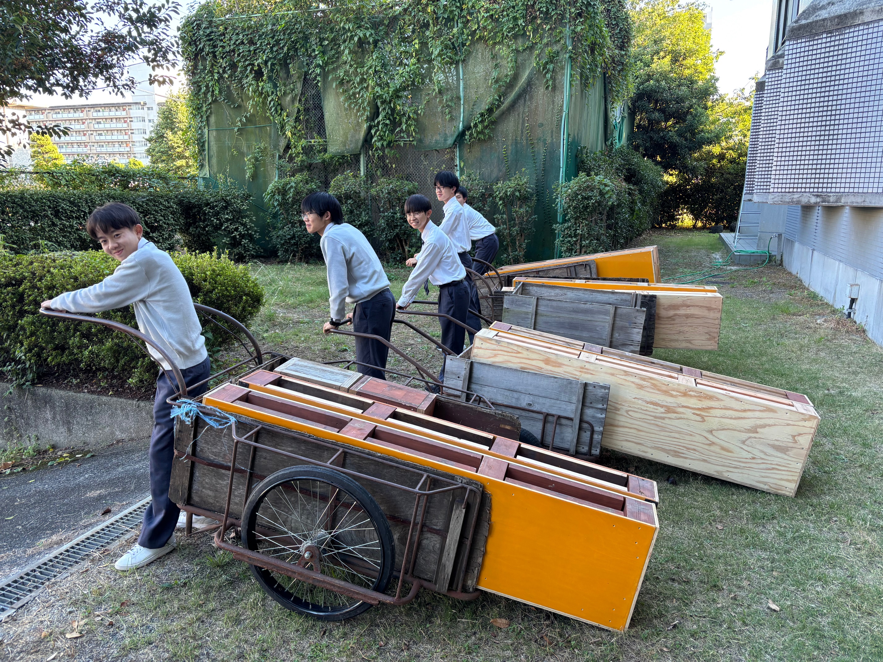 移動も楽器・ひな壇運搬も、徒歩&リアカーで行けちゃいます!