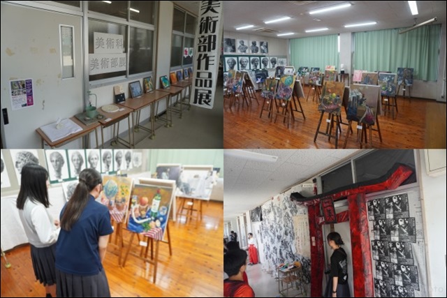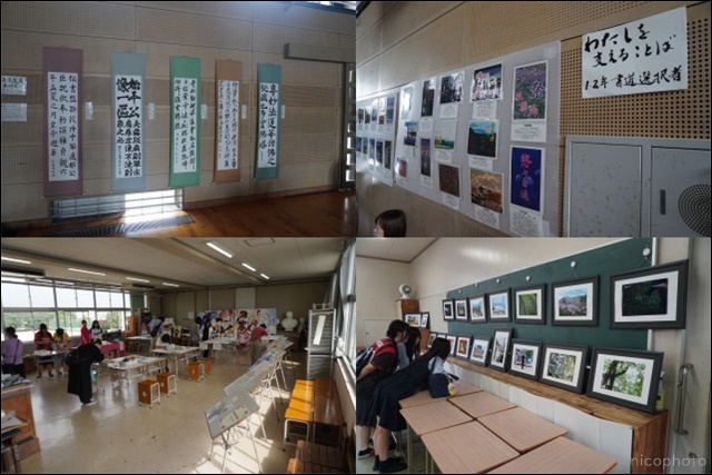 書道部や書道選択者、普通科美術部、写真部の作品展示など