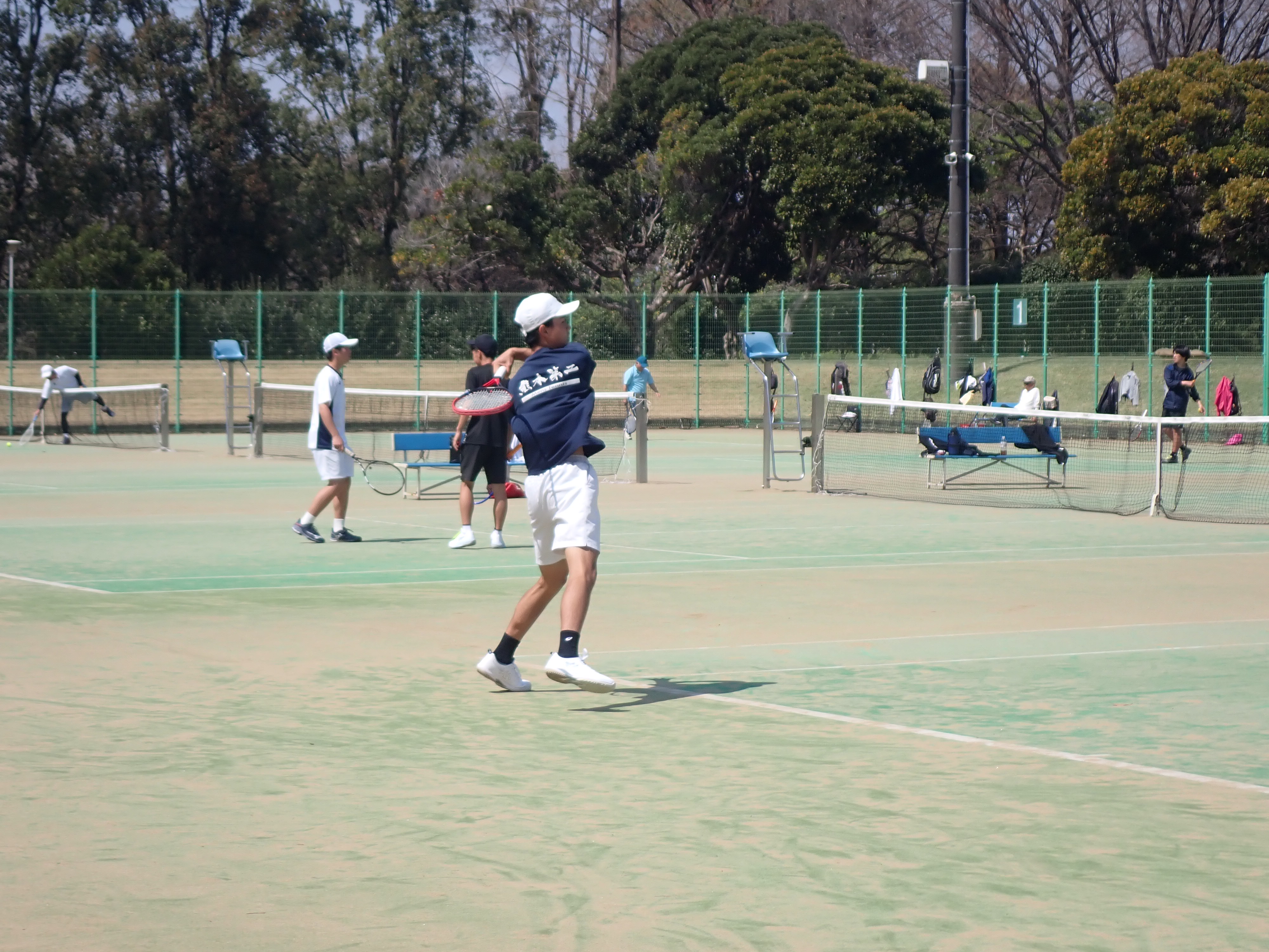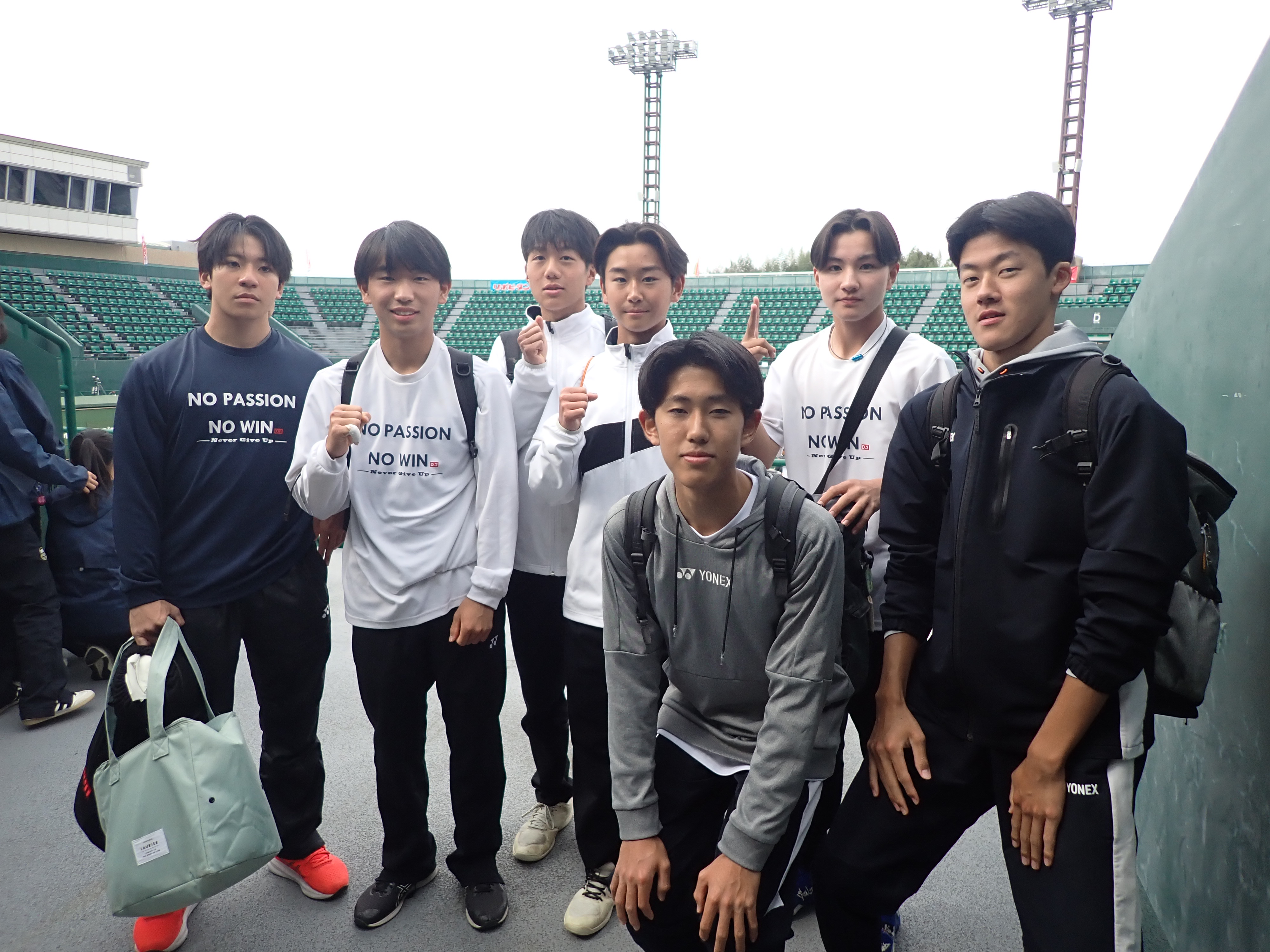 3月20日から福岡市の博多の森庭球場で第48回全国選抜高校テニス大会が始まりました。22日は練習を休みにして希望者8人が会場まで足を運び、全国レベルの熱いプレーを体感しました。大会2日目の22日は団体戦の2回戦が行われ、シード校が登場しました。テニス部男子の目標は、『インターハイ出場』『全国選抜出場』です。特に『全国選抜』は2027年以降、熊本県からの出場はなく、熊本県高校テニスの悲願を達成したいと考えています。昨年から県外の高校や先生方の御厚意で、九州をはじめ関西や中国・四国の強豪校との練習試合を繰り返してきました。そのため、目指すテニスのレベルは上がり、着実にプレーの質も向上しました。2026年度は『インターハイ』そして『全国選抜』の出場を果たしたいと思います。22日は食い入るように全国の強豪校のプレーを見て目に焼き付けてきました。簡単にはまねできないプレーですが、常にイメージして練習に取り組んでいきたいと思います。