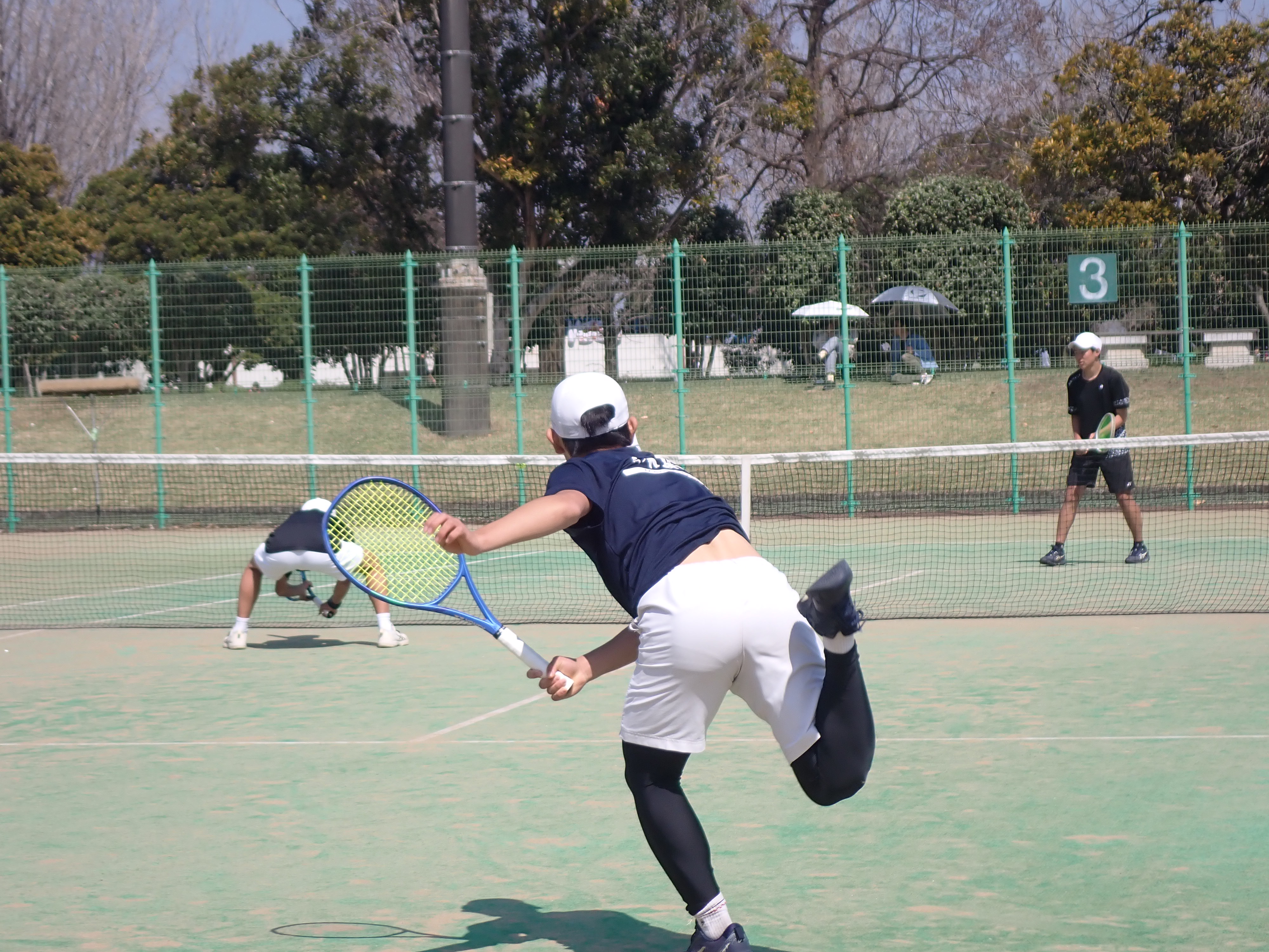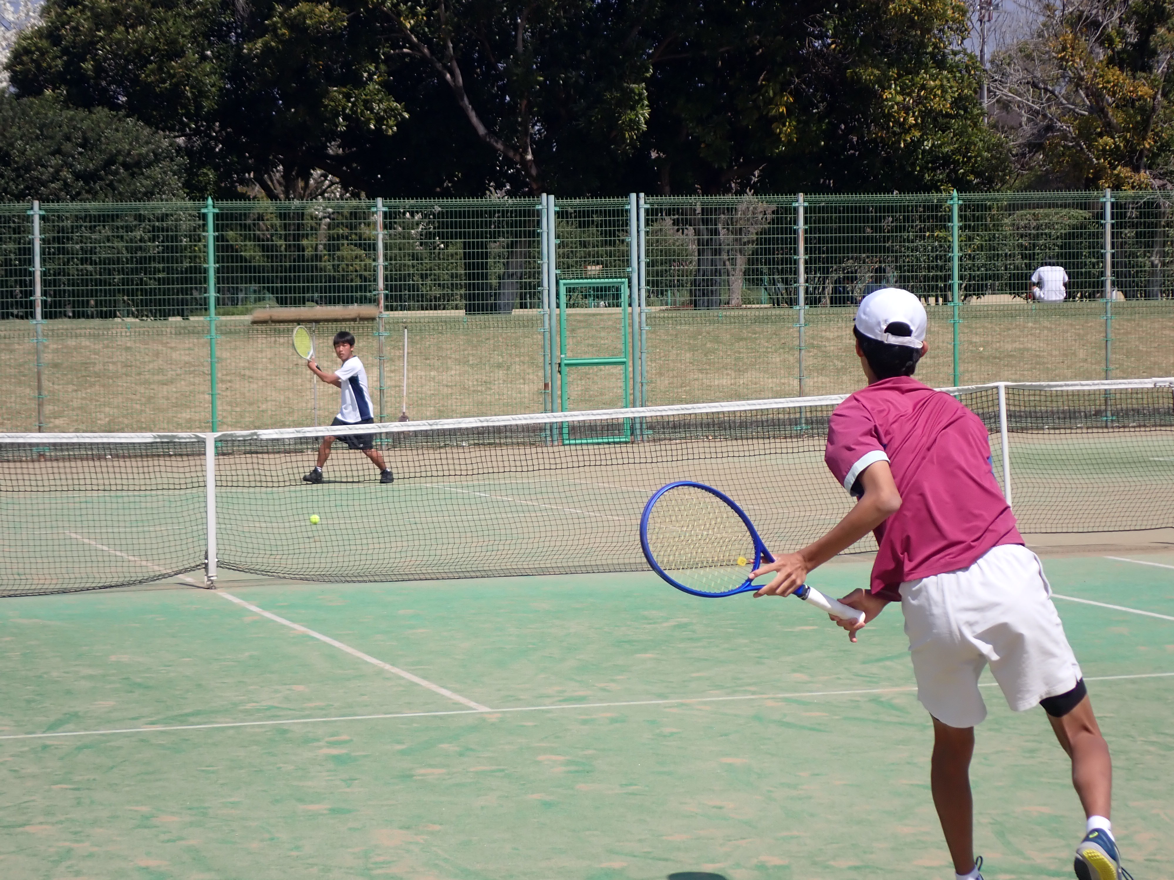 20日は総合運動公園で、長崎北陽台高校、武雄高校、熊本工業高校と練習試合を行いました。練習試合では普段の練習とは違って、緊張した場面でコートに立ってプレーすることができます。そのため、普段の練習通りのプレーができず、悔しい思いをすることも多々ありますが、確実に試合運びが上達しています。冬場も欠かさず県外の高校を中心に練習試合を行ってきました。実戦経験では決して他校にひけを取らないと自負しています。この日の練習試合では、1年生を中心に積極的な攻めのプレーが見られました。今週末の28,29は県ジュニアテニス選手権が開催され、男子9人、女子6人が出場します。大会前の最後の練習試合でしたが、いい感じで大会に入れそうです。
