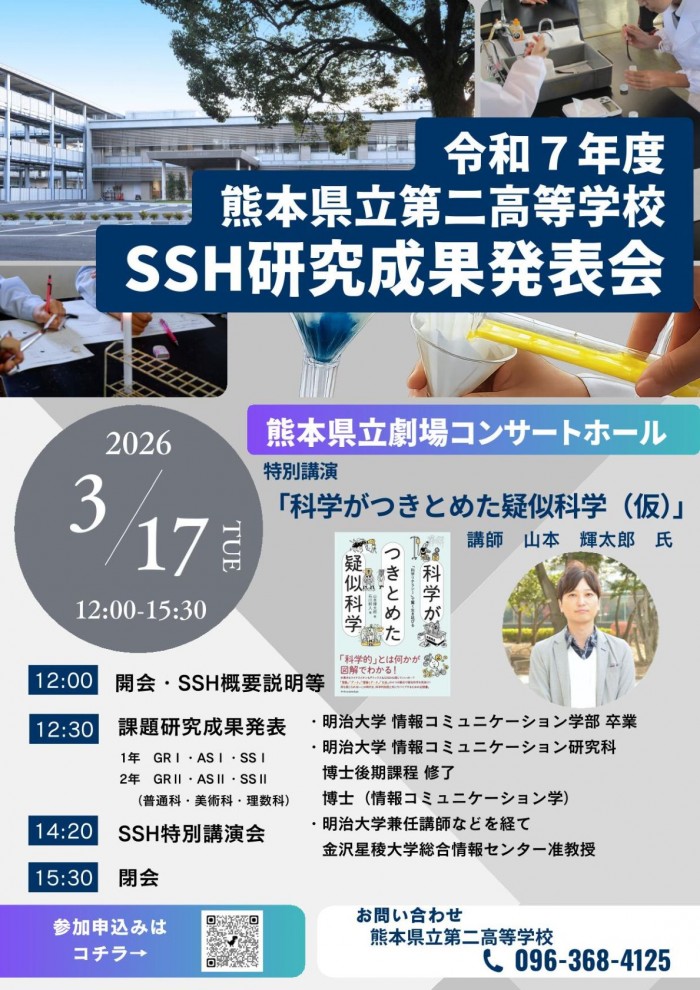 このフェアは、平成28年の熊本地震、令和2年の7月豪雨などからの創造的復興や緑の流域治水の推進に取り組む本県が、豊かで安全・安心な社会基盤の構築の実現を目指して毎年実施しているものです。200を越える企業・行政・学校等から防災に関する商品開発・取り組み等が紹介されるなか、本校からは普通科・理数科・美術科が取り組んでいる探究活動の紹介、熊本サイエンスコンソーシアム(KSC)の活動紹介を行いました。また、2年普通科(希望者)・理数科、1年理数科・美術科の生徒が参加し、企業や行政として行っている大人の「探究」に触れる機会となりました。参加したほとんどの生徒が、新しい価値観に触れることができたと感じたようです。