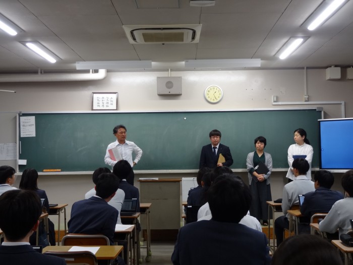 授業の最後には、「説明するとはどういうことか?」について、1950年代のアメリカの哲学者カール・ヘンペルが提唱した「説明の被覆法則モデル」をもとに紹介しました。「一般法則と個別的事実」、「説明すべき現象」この2つを結び付ける作業が説明にあたるという少し難しい話になってしまいましたが、生徒たちはうなずきながら一生懸命「何か」を得ようとしていました。