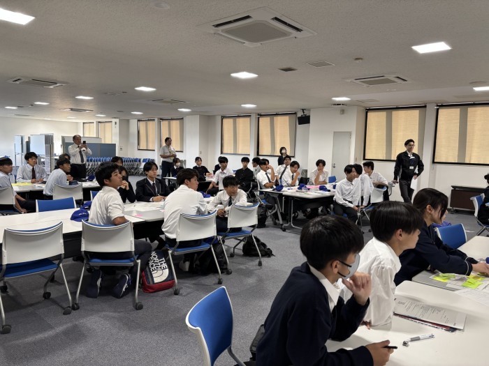 本日の研修は熊本の発展を担う地域社会のリーダーとなる科学技術人材の育成を目的として、本校普通科2年理系クラス9名に加え、KSC所属の熊本北高校、鹿本高校、熊本西高校からも参加者が集まり、計40名程度が参加しました。
