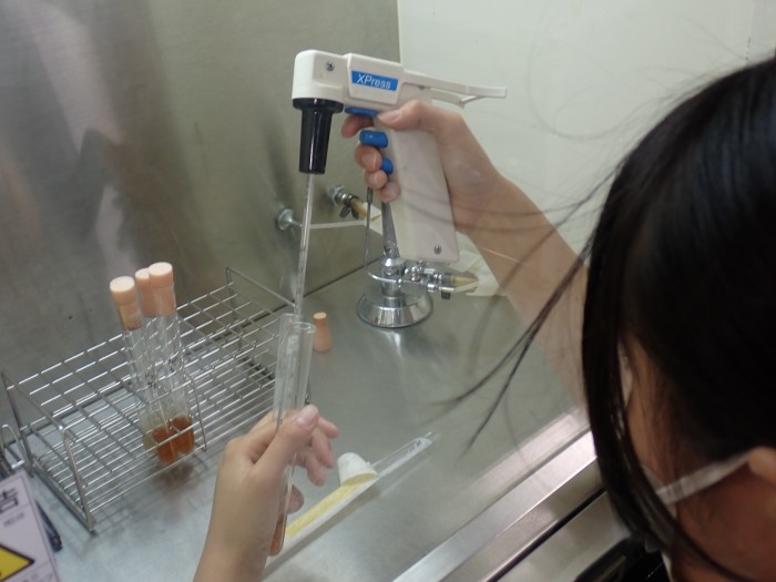高発酵能の4株(N1,N2,K1,T2)を発酵用培地に植え…